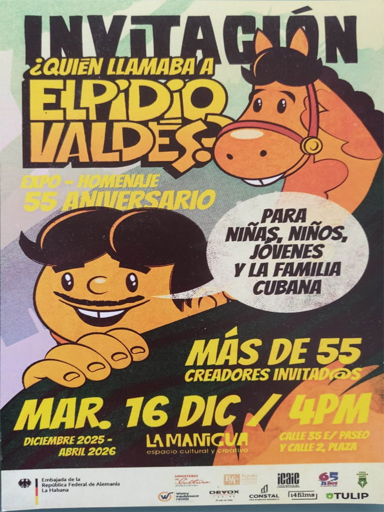 Exposición Homenaje celebrando el 55 Aniversario de la creación del animado "Elpidio Valdés". Estará dedicado a los niños y niñas cubanos. Actividad que tendra varios artistas invitados, entre ellos al artista Roberto Diago. El evento se extenderá desde el 16 de diciembre de 2025 hasta abril de 2026.