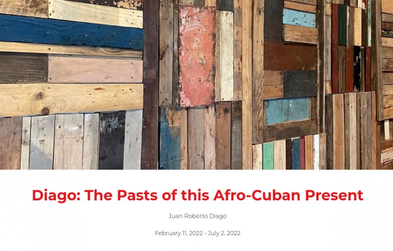 A leading member of the new Afro-Cuban cultural movement, visual artist Juan Roberto Diago (b. 1971) has produced a body of work that offers a revisionist history of the Cuban nation. His “history,” a term that he frequently inserts in his works using the visual language of graffiti, is not the official narrative of a racially harmonious nation, built thanks to the selfless efforts of generous white patriots. Diago’s Cuba is a nation built on pain, rape, greed, and the enslavement of millions of displaced Africans, a nation still grappling with the long-term effects of slavery and colonialism. To him, slavery is not the past, but a daily experience of racism and discrimination. Africa is not a root, but a wellspring of cultural renovation and personal affirmation, the ancestors that sustain him in his journey. Diago: The Pasts of this Afro-Cuban Present is the first retrospective exhibition of this prominent Cuban artist, offering a critical and selective view of over two decades of work. It traces his singular efforts to construct new pasts, the pasts required to explain the racial tensions of contemporary Cuba, the pasts of this Afro-Cuban present.
