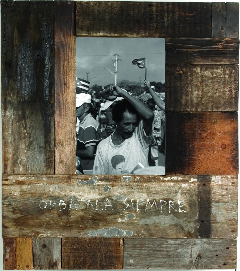 In this series of photographic works, Diago centered on the people in his community. To capture the images, he walked through the city with his camera and introduced himself to people he found interesting. He would photograph them, show them the photograph and ask them to provide a title for their photograph. After printing the works for backlighting, Diago built the frames from the pieces of wood found in the communities where these people lived, scratching the titles they provided into the surface of the work like graffiti. The words in concert with the images of those represented reveal important layers of Cuban life that demystify the everyday lives of Cubans .