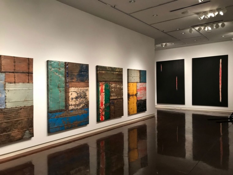 En la gran pintura, Sin título, de la serie, Heridas 2015, Roberto Diago ha cubierto el lienzo con una gruesa capa de pintura negra. La planitud resultante del plano de la imagen solo se rompe por dos aperturas verticales en forma de barras largas, en las secciones superior izquierda y centro derecha de la pintura. Los cortes parecen heridas abiertas de intenso rojo y blanco, como sugiere el título de la serie.